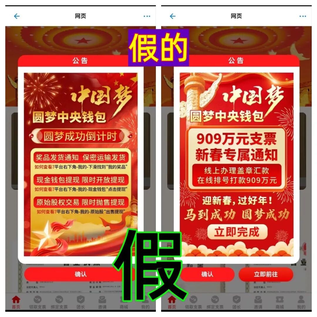 打着“中国梦”旗号的“圆梦钱包”APP是网站搭建在境外的民族资产解冻类诈骗项目。该项目谎称要给“实名认证注册”的人发放386万元,还给“圆梦股权”?这一眼假的骗局,让无数人趋之若鹜,不少中老年人呼朋唤友去注册,想拿到386万元,不想想:凭什么白给你386万元?至于项目中宣传的“圆梦股权”?是哪家公司的啊?这明显就是编造的,“圆梦基金”、“圆梦星币”都是诈骗道具,目的是骗取参与者身份信息进行精准诈骗。
