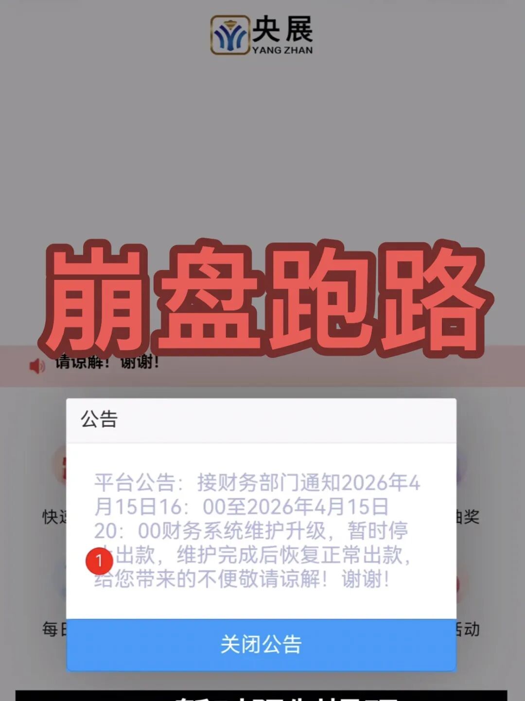 终有一天你会发现,这个世界什么都是假的,而你,却认真了一辈子! 祝各位只发大财不当韭菜! 央展资金盘,前几天骗子就已经在开始收网了,狂出暴利送钱产品,从投资送手机,到后面直接充多少送多少,目的已经很明显了,就是想最后收割一波无脑韭菜,当时送手机就是准备跑路的节奏,如果当时听劝别充值,帐户能提就提,起码还能及时止损,目前平台已经限制提现,车门已经锁死,接下来就是千万小心,骗子很可能会二次收割,远离!